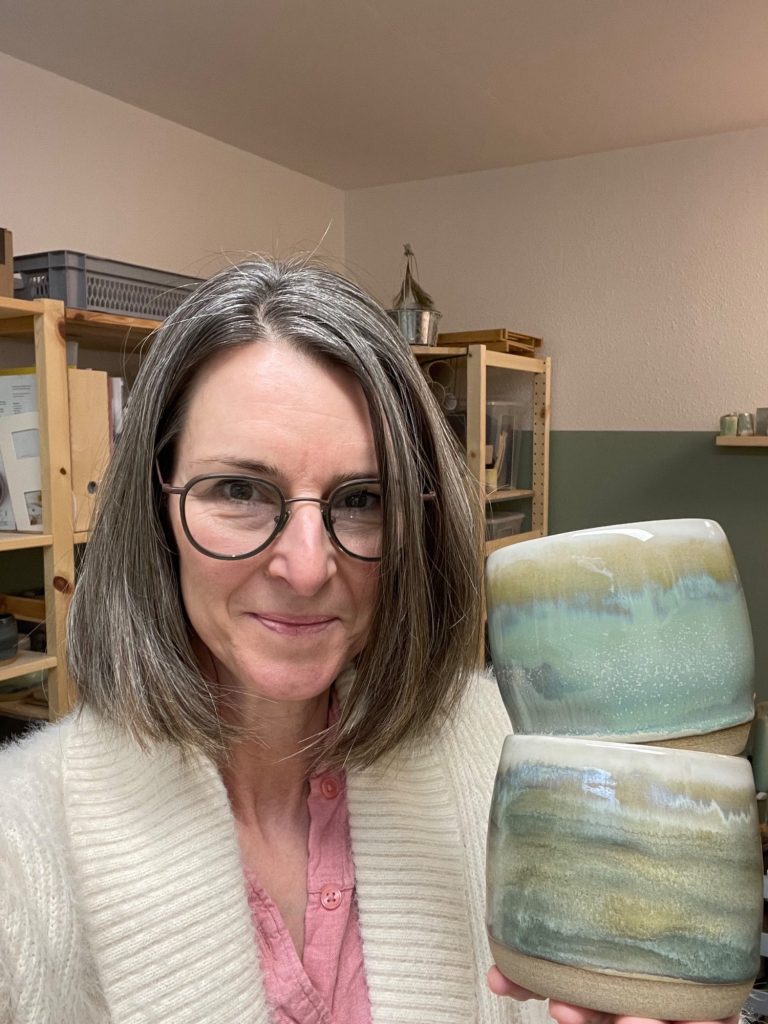 2021 bestellte ich mir einen Online-Töpferkurs und lernte durch Anleitungsvideos die Aufbautechnik. Der erste Töpferkurs an der Drehscheibe Ende 2022 besiegelte diese Leidenschaft. Mittlerweile bin ich jede Woche in einer offenen Werkstatt und erweitere unter Aufsicht einer Keramikerin meine Techniken.