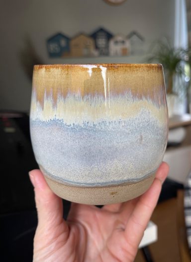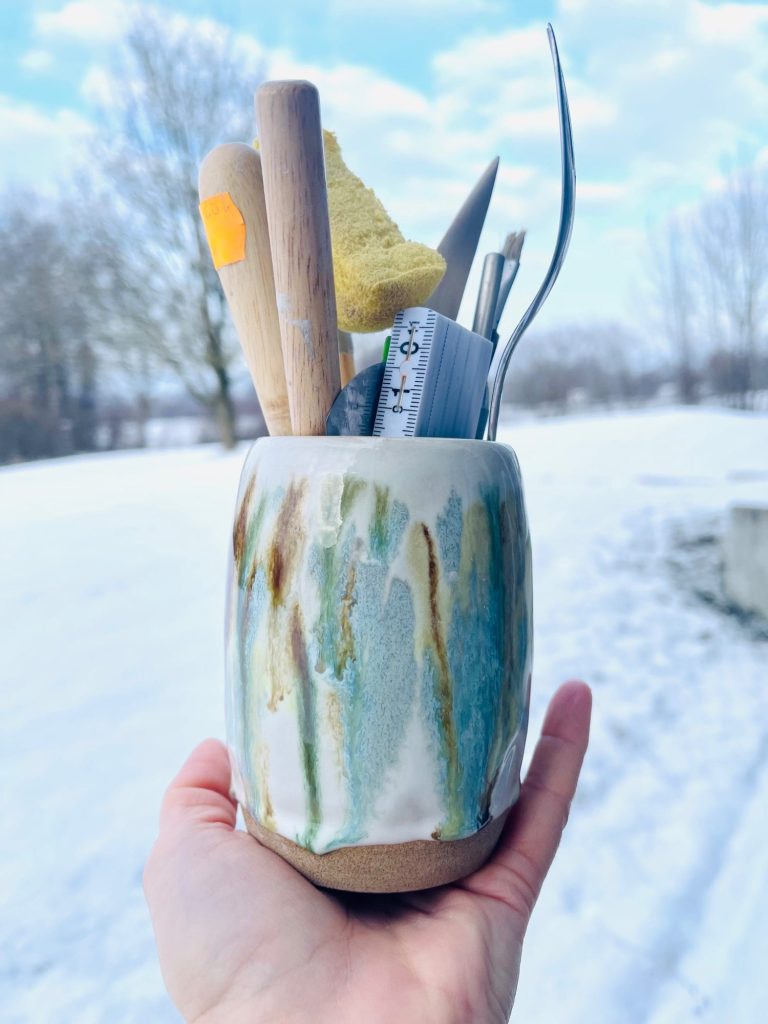 2021 bestellte ich mir einen Online-Töpferkurs und lernte durch Anleitungsvideos die Aufbautechnik. Der erste Töpferkurs an der Drehscheibe Ende 2022 besiegelte diese Leidenschaft. Mittlerweile bin ich jede Woche in einer offenen Werkstatt und erweitere unter Aufsicht einer Keramikerin meine Techniken.